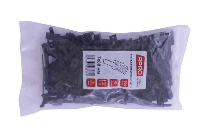 Кріплення ремешковий Apro 7 x 80 мм чорний (100 шт.) (KR-22B)