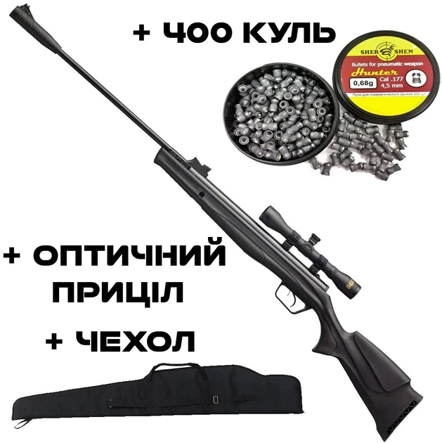 Пневматична гвинтівка Beeman Mantis ГАЗ ПРУЖИНА з оптичним прицілом з кулями