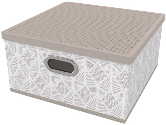 Короб для зберігання EuroHome Beige Leaf з пластиковою кришкою 30х30х15 см бежеві листя (405194)