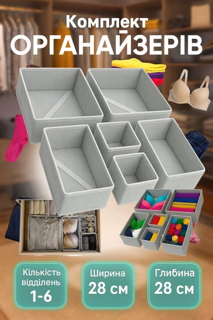 Комплект органайзерів RUHHY 6 шт ущільнений каркас Сірий