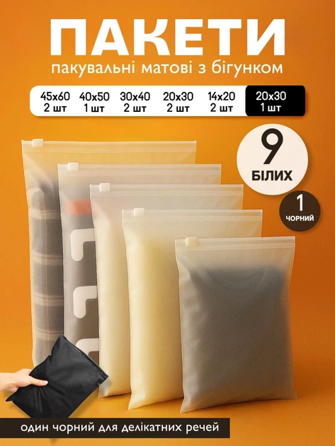 Зіп пакети пакувальні мішки багаторазові для одягу речей багажу 10 шт для зберігання і упаковки білі матові поліетиленові з