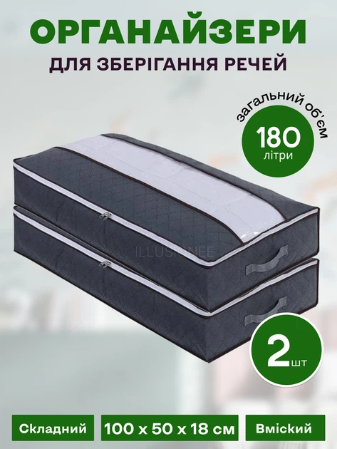 Набір Органайзерів з ручкою для ковдри, постільної білизни, подушок та речей 100х50х18 см 2 штуки 3DTOYSLAMP