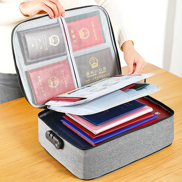 Сумка дорожня з кодовим замком (37х10,5х27см), Сіра / Органайзер для зберігання документів (L)