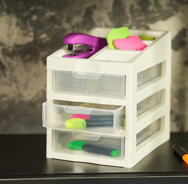 Комод міні пластиковий Алеана 3 яруси з шухлядами Молочний