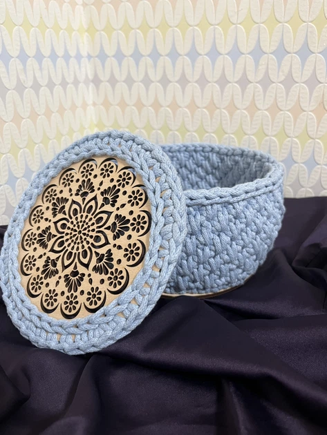 Кошик, органайзер 17*10 для зберігання , в'язаний гачком, кошик з кришкою , ручна робота