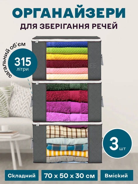 Органайзери кофри 3DTOYSLAMP набір із 3 сумок для зберігання речей одягу постільної білизни подушок ковдр іграшок текстилю т
