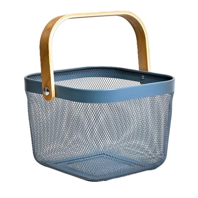 Корзина-переносна Stenson R92042 металева з ручками 24.5 см Blue