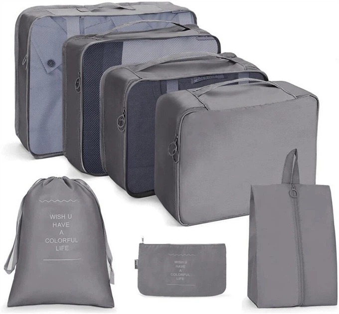 Органайзер дорожній для одягу. Набір органайзерів кофрів у валізу. Система зберігання одягу, комплект 7 шт. Сірий (4020-G)
