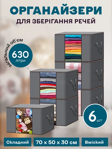 Органайзери кофри 3DTOYSLAMP набір із 6 сумок для зберігання речей одягу постільної білизни подушок ковдр іграшок текстилю т