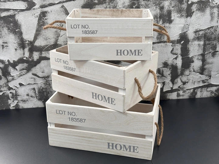 Ящик декоративний дерев'яний Home кошик для зберігання 3 шт 35х25х17/31х21х15/26х16х13 см Білий (GQ-002)