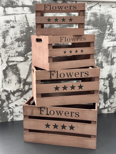 Ящик декоративний дерев'яний Flowers кошик для зберігання 4 шт 40х31х22/36х26х20/31х21х18/26х16х16 см Коричневий (GQ-004)