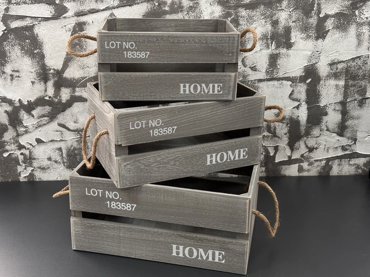 Ящик декоративний дерев'яний Home кошик для зберігання 3 шт 35х25х17/31х21х15/26х16х13 см Сірий (GQ-003)