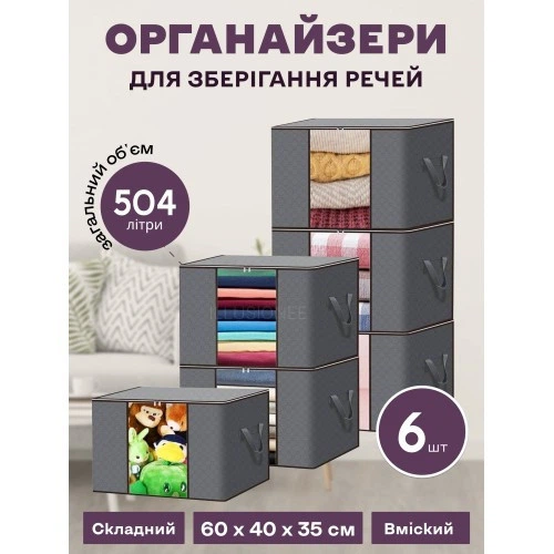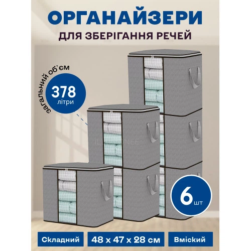 Набір органайзерів з 6 штук 48 х 47 х 28 см (378л) для зберігання речей, одягу, білизни в шафу, комод, тумбочку