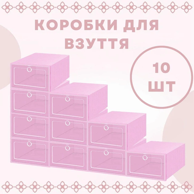 Набір коробок контейнерів для взуття 10шт з прозорими дверцятами органайзер рожевий 33х23х14 см (L60105R)
