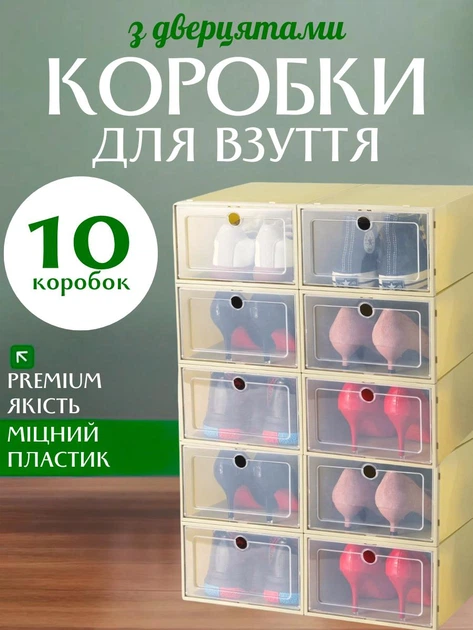Набір коробок контейнерів для взуття 10шт з прозорими дверцятами органайзер жовтий 33х23х14 см (L60106R)