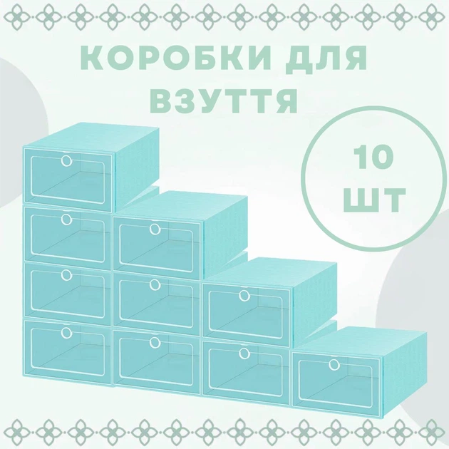 Набір коробок контейнерів для взуття 10шт з прозорими дверцятами органайзер блакитний 33х23х14 см (L60107R)