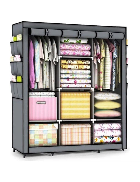 Текстильна складна шафа-гардероб з 8 полицями та 2 вішалками 17513045 см до 15 кг на полицю