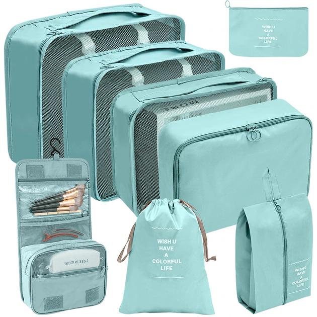Набір комплект дорожніх органайзерів кейсів для одягу білизни косметики аксесуарів 8 шт (475226-Prob) Блакитний