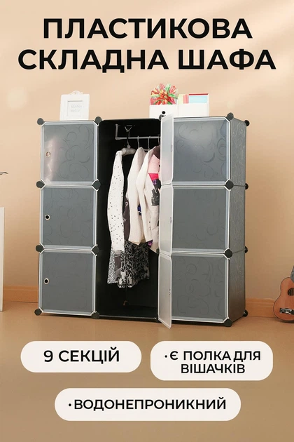 Пластиковий складаний модульний шафа Storage Cube Cabinet MP-39-61, 9 секцій, міцний каркас, легкий монтаж, стильний дизайн