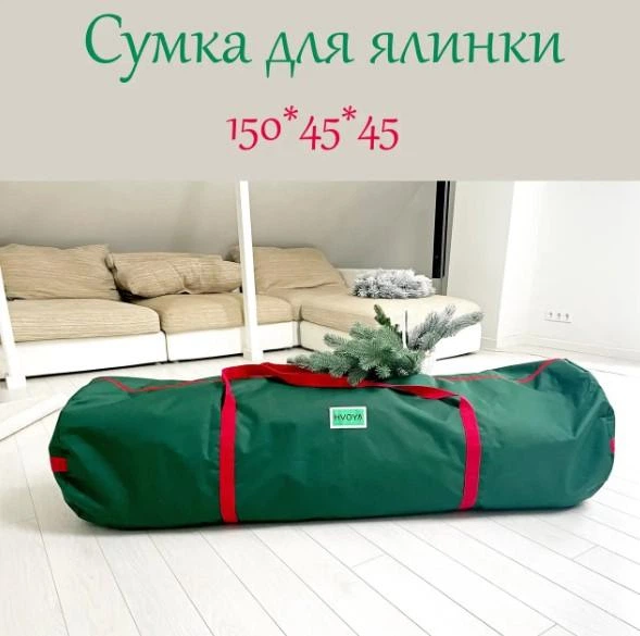 Сумка-чохол для штучної ялинки до 2,2 м. Колір зелений з червоним