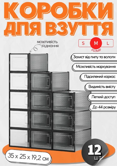 Комплект боксів-органайзерів 12 шт (коробки для зберігання взуття, розмір M), LUMINARIA