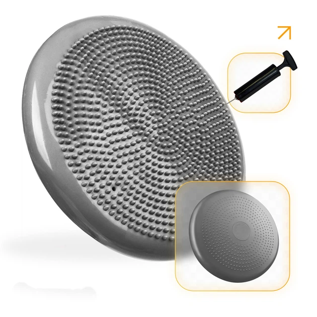 Подушка YogaLife 34 см сіра з насосом YL-PMB-SR (Балансувальна масажна з шипами, сенсомоторний масажний балансувальний диск