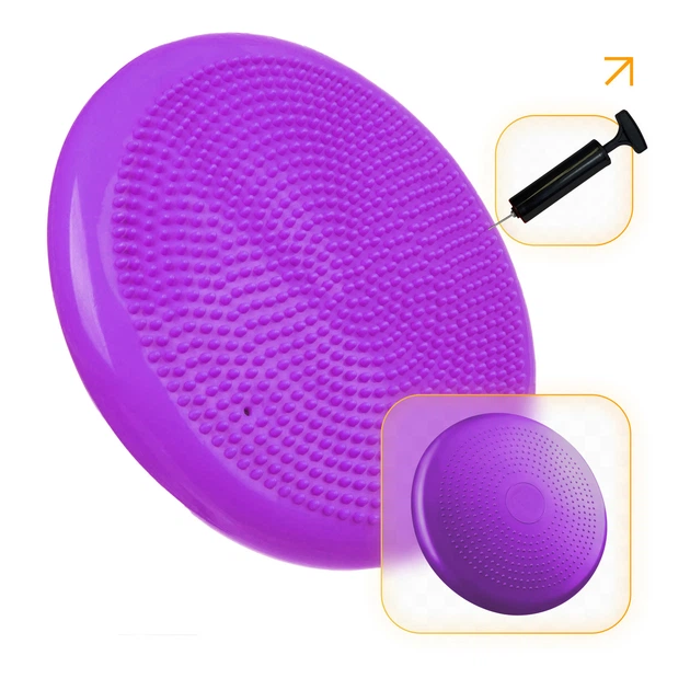 Подушка Wealis 34 см фіолетова з насосом (Балансувальна масажна з шипами, сенсомоторний масажний балансувальний диск для бал