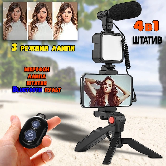 Набір блогера 4в1 Ring-fill-light Студійне світло з міні штативом+Мікрофон+Bluetooth Пульт