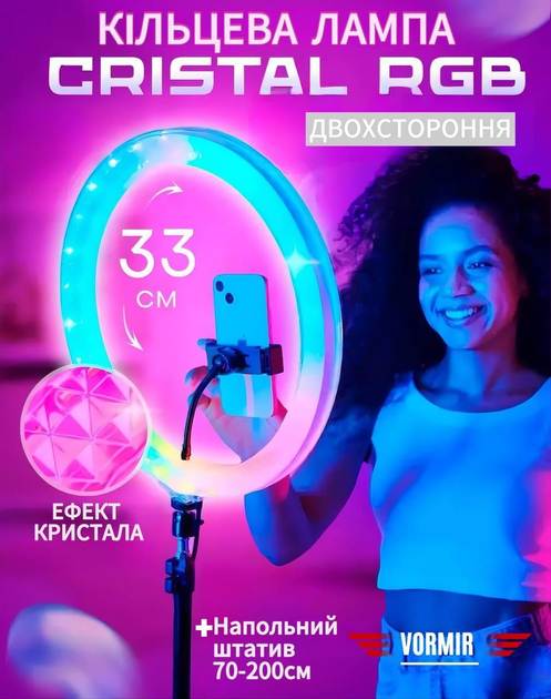 Кільцева лампа RGB Crystal RD-30 діаметром 30см універсальний тримач на гнучкій ніжці Прозорий