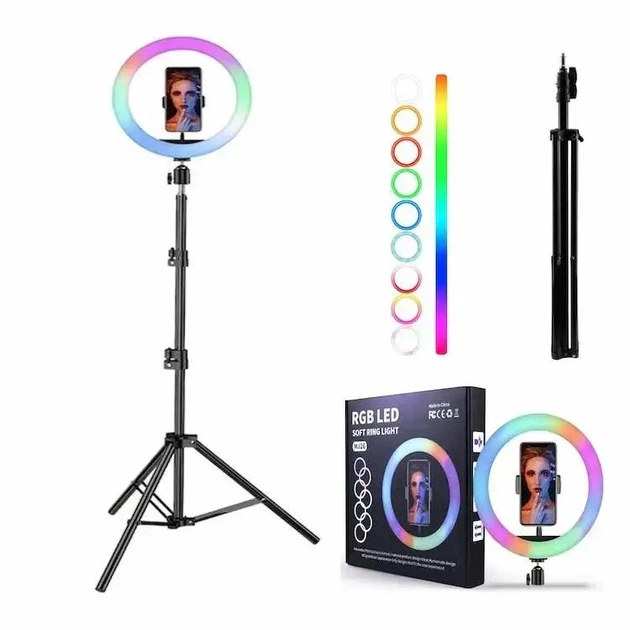Кільцева лампа RGB MJ260 26 см для відео Селфі лампа + Штатив 2 м (37108)