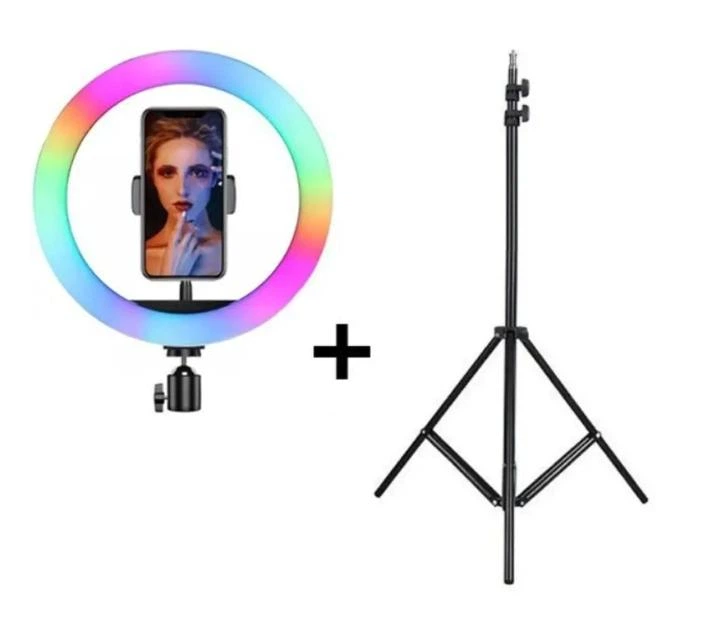 Кільцева LED-лампа RGB MJ26 + штатив тренога 210 см универсальный з кріпленням, керування через провід (кнопкове), кільце дл