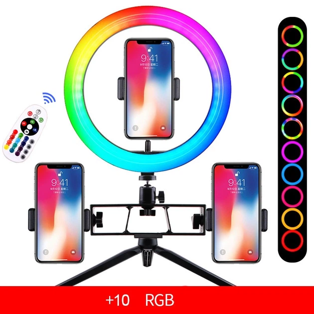 Кільцева LED лампа 30 см RGBW 8 кольорів із штативом 210 см кільцеве світло підсвічування для фотографів блогерів