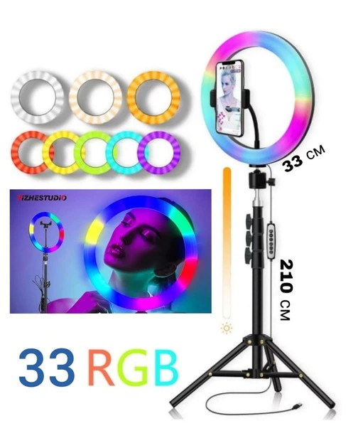 Кільцева RGB лампа 33 см + Штатив, тримач для телефона, пульт. Лампа блогера, для стріму, студійне світло