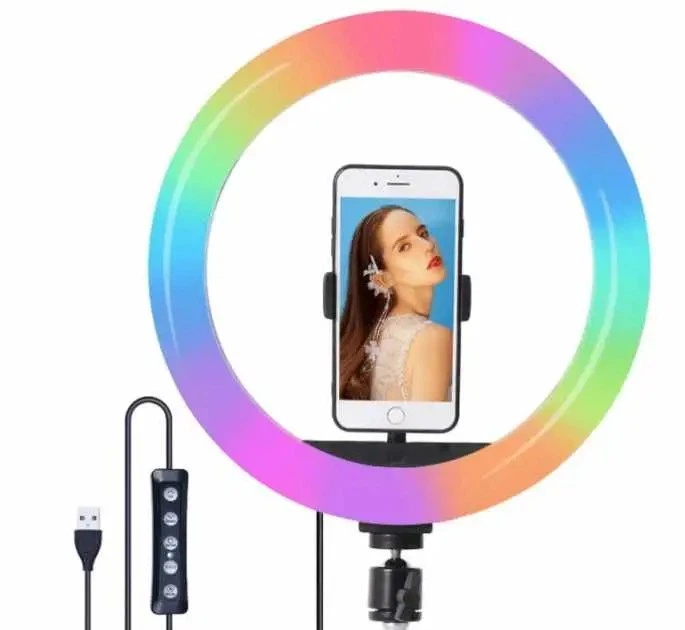 Кольорова кільцева лампа MJJ-33 USB LED RGB для селфі + тримач
