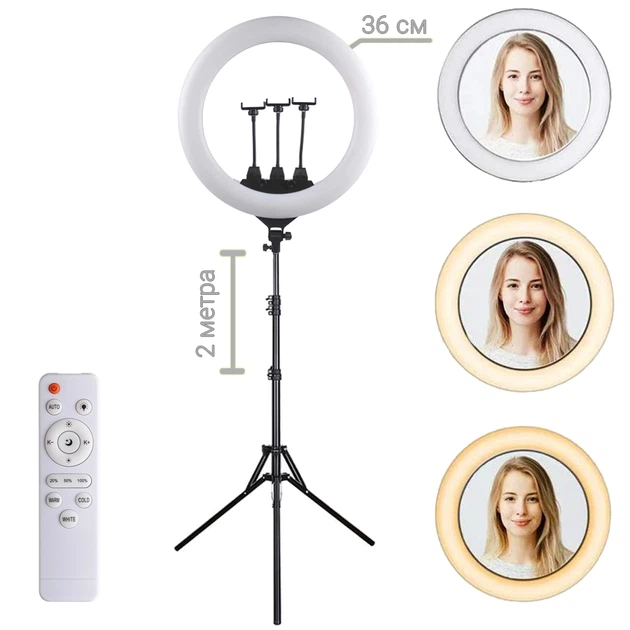 Кільцева LED лампа світлодіодна Ring Light LS-360 з трьома власниками для телефону 36 см + пульт+ штатив 2 м