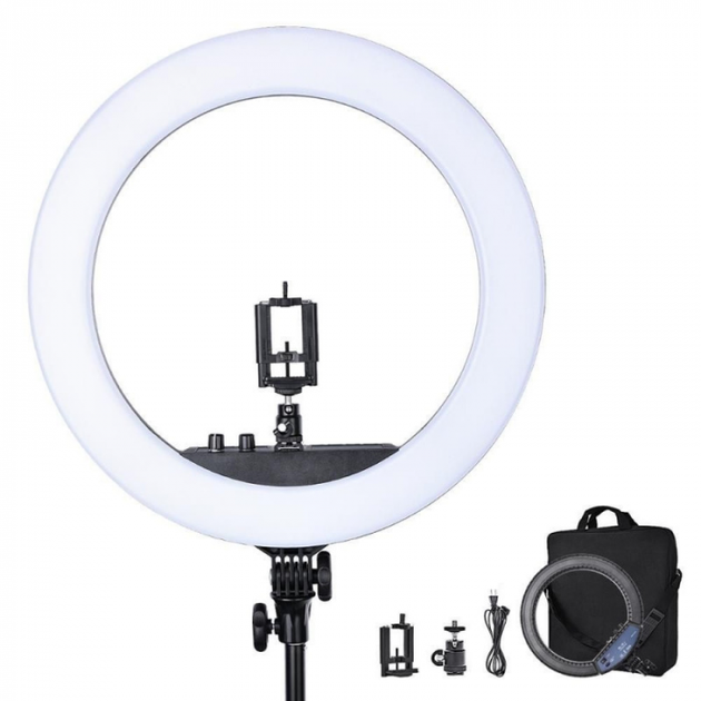 Кільцева лампа 55см 55W 3 тримача для телефону 3 режими світіння сумка пульт LED кільцеве світло блогерам візажистам Ring Li