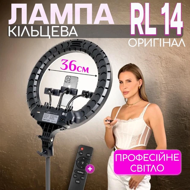 Кільцева лампаled Rl 14 36 см + сумка для зберігання + штатив, Кільцева світлодіодна led селфі-лампа зі штативом для фото та
