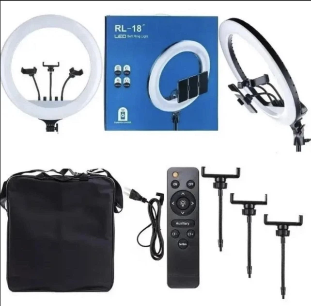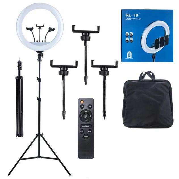 Кільцева LED лампа для зйомки з 3 тримачами телефону, штативом і ДУ XPRO RL-18 46см 55W (RL-18)