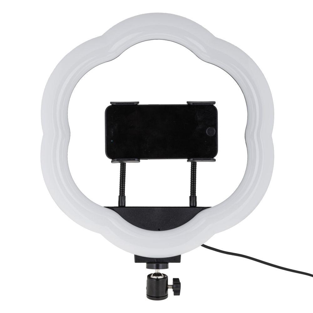 Лампа RGB LC-318 (Flower Type) 36 cm — це доступне кожному професійне освітлення для фото та відеознімання, додаткового освітлення. Пристрій реалізований в оригінальній формі, виготовленій за типом квітки з зовнішнім диметром 33 см. Модель здатна працювати в понад 10 режимах, наприклад, світити різними кольорами окремо, що переливаються по колу кольоровими градієнтами та сегментами. Корпус