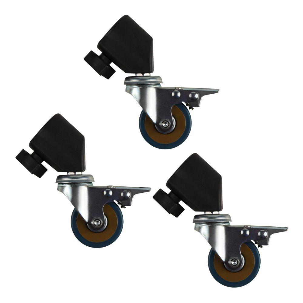 Комплект коліс для фотообладнання 22 мм (метал) забезпечує високу мобільність навіть важких стійок та іншого обладнання зі збільшеним діаметром ніжки. Посилена конструкція з металу дає змогу їм витримувати чималі навантаження, а їхній поворотний механізм і стопори сприяють точному й безпечному позиціонуванню. Особливості та переваги коліс для фотообладнання 22 мм (метал): •