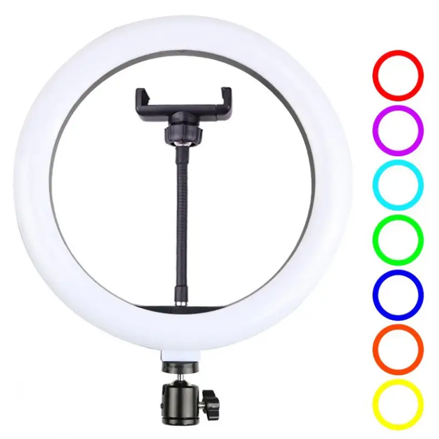 Кільцева світлодіодна LED лампа з кріпленням для телефону RGB MJ33 33 см