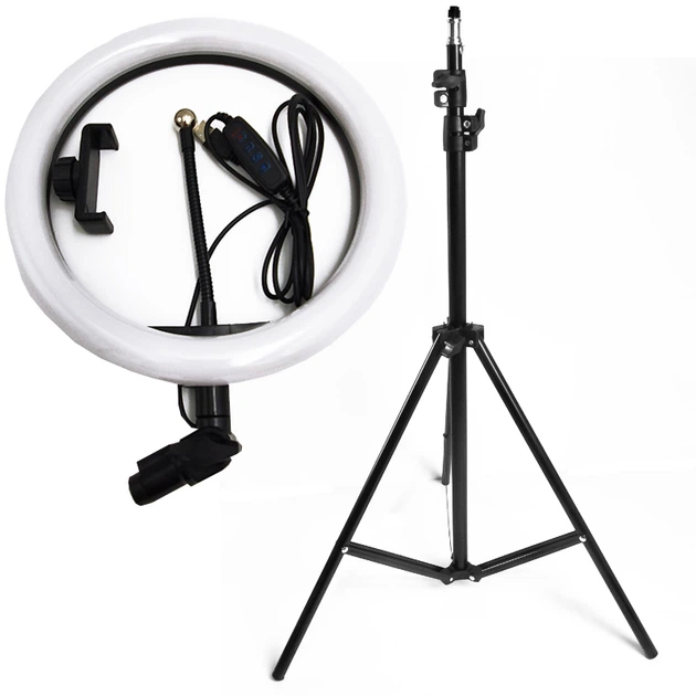 Кільцева світлодіодна лампа 36 см на штативі 2,1 м та тримач для телефону