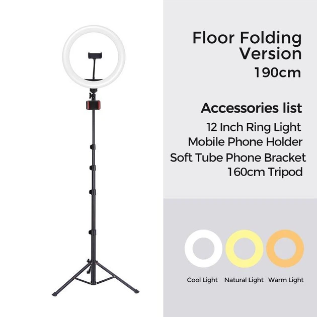 Кільцевий світильник F-619 з підставкою-треногом і тримачем для телефона