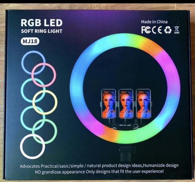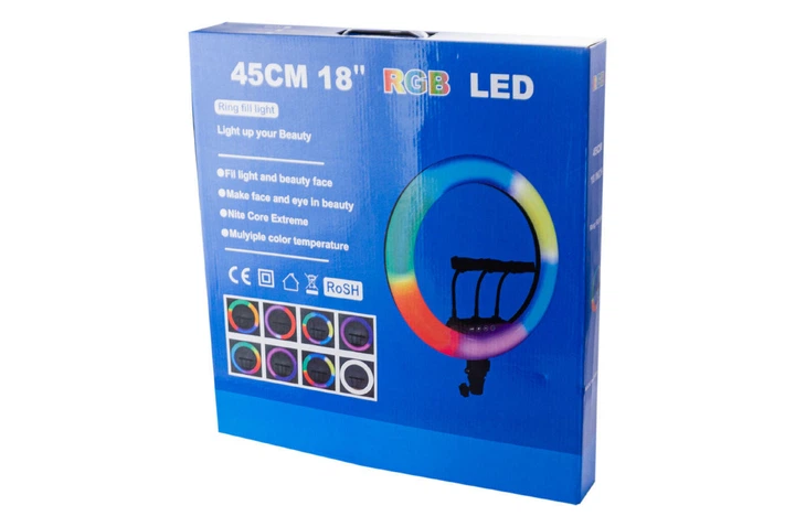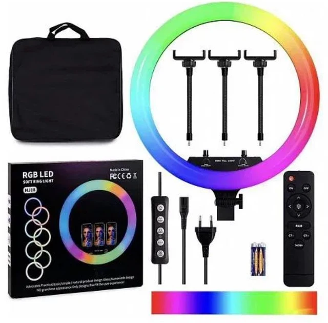 Кільцева світлодіодна кольорова лампа RGB LED MJ18 зі штативом 45см та сумкою
