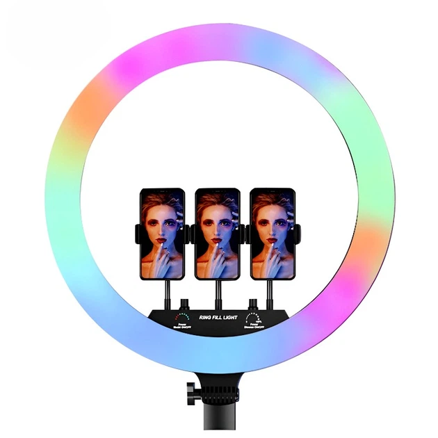 Кільцева лампа для селфі RGB LED 45 см зі штативом та тримачем на 3 телефони , світлодіодна лампа для блогерів, TikTok, фото