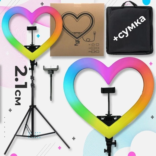 Кільцева лампа світлодіодна у формі серця Heart Led RGB 48 см з тримачем телефону + Штатив 2.1 м