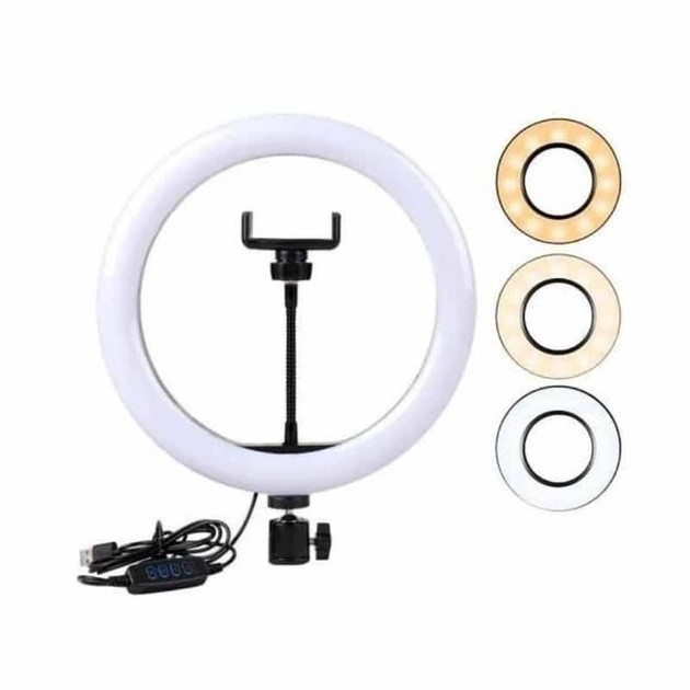 Кільцева лампа 26 см для візажиста LED лампа з тримачем для телефону Набір блогера