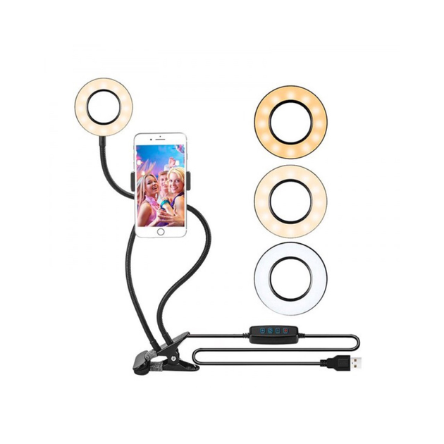 Кільцева світлодіодна лампа з прищіпкою для селфі з тримачем телефону 9 см живлення через USB