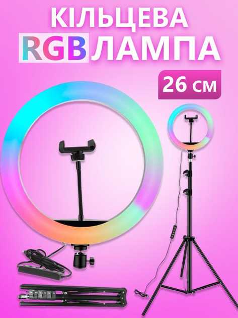 Кільцева лампа зі штативом для телефону RGB LED 26 см