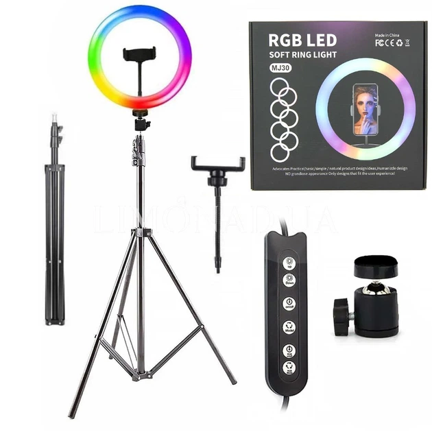 Кільцева світлодіодна лампа RGB MJ-30 на штативі, 30см, (1 тримач)